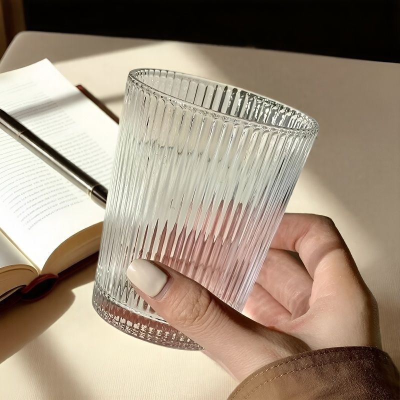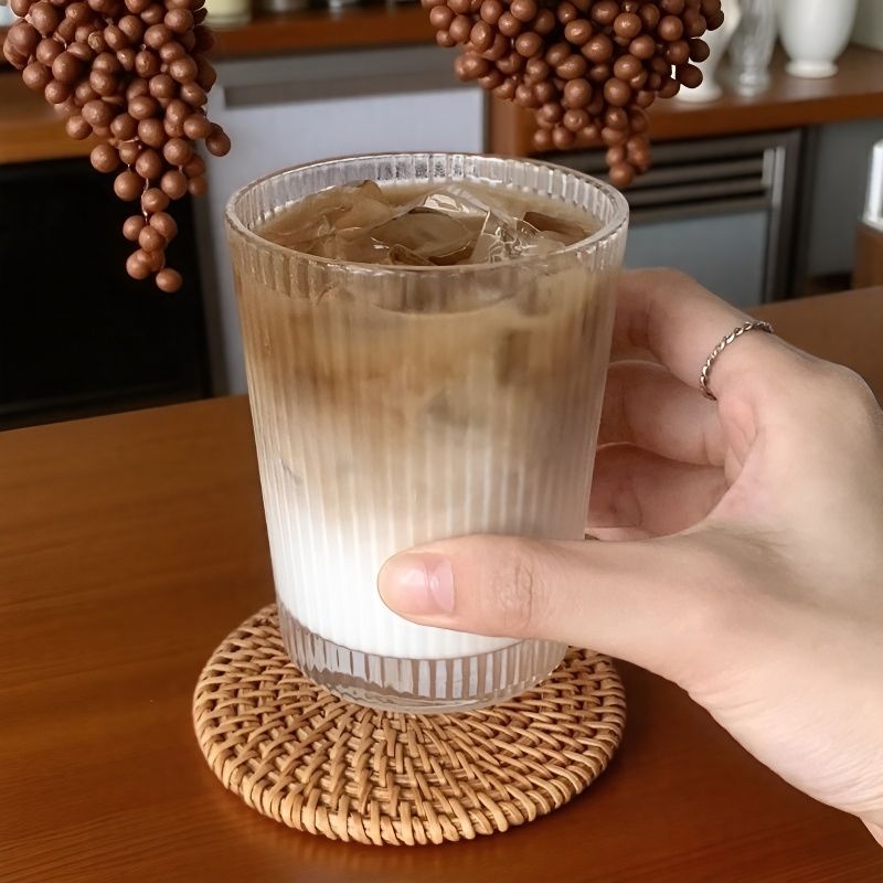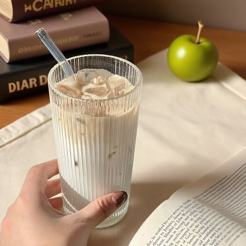 ins简约条纹竖纹玻璃杯冰美式咖啡杯牛奶吸管杯学生家用无铅便携
