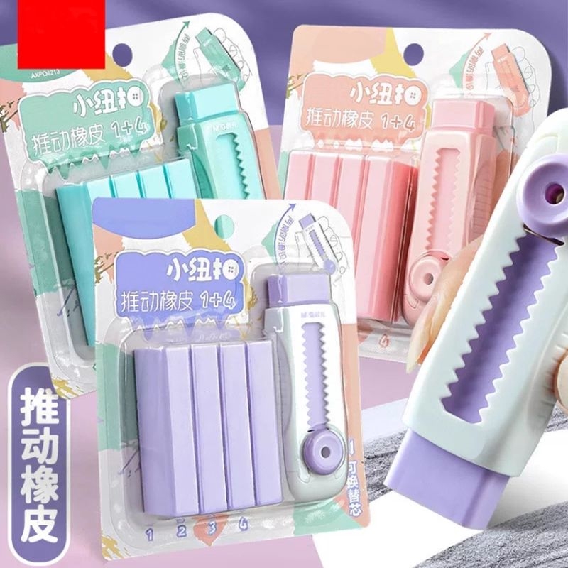 推动小纽扣无屑超干净推拉橡皮擦小学生专用文具用品不易留痕