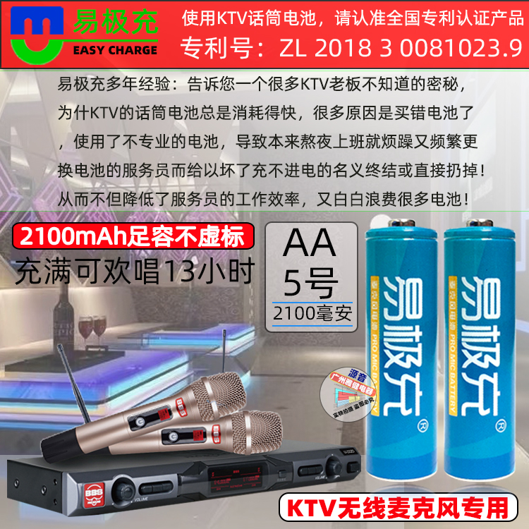 易极充5号电池2100毫安足容不虚标充电电池KTV话筒高耗能专用电池