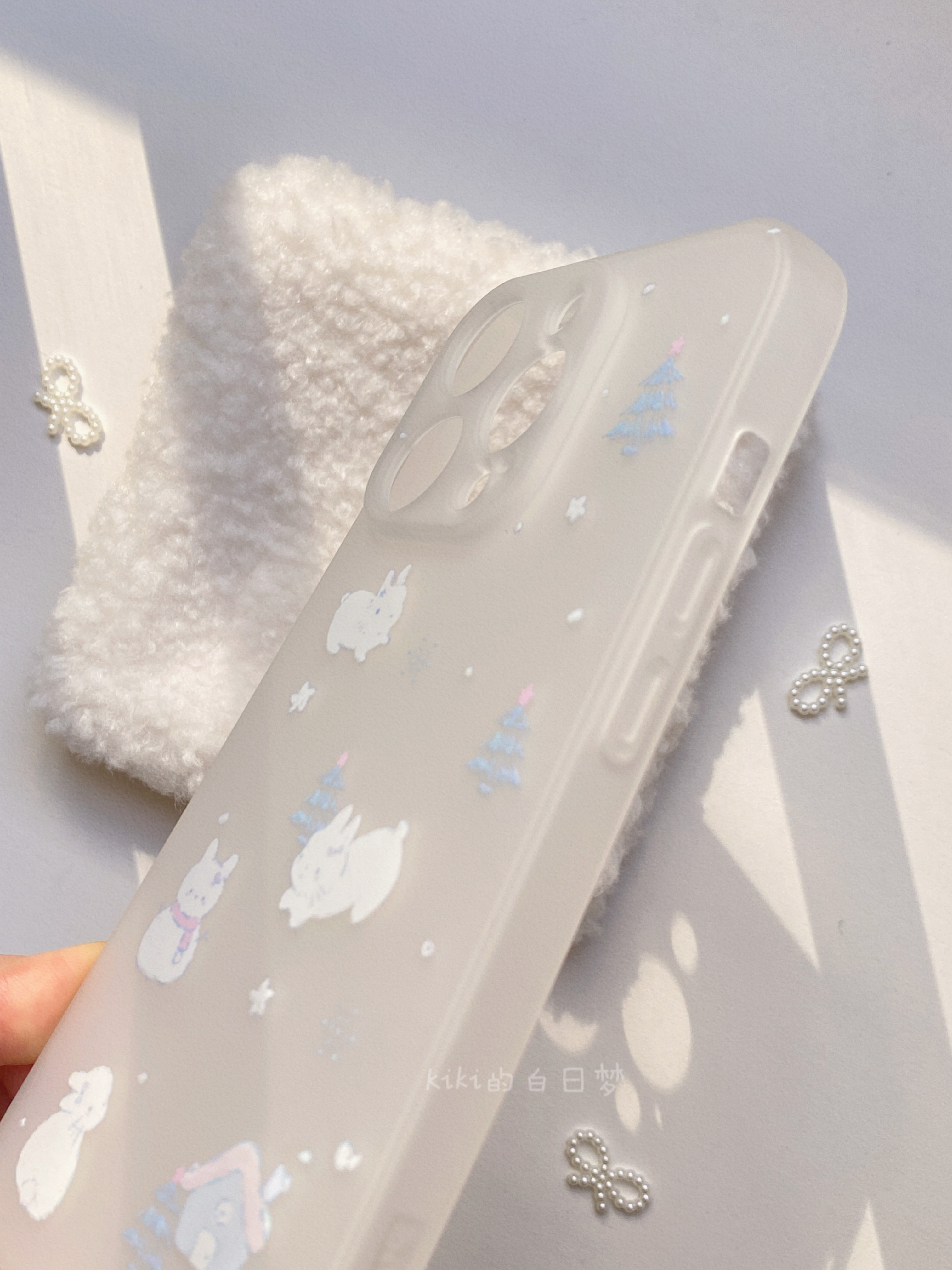 kiki白日梦原创/蓝色圣诞树下雪小兔子韩系冬天氛围感适用苹果iphone1415promax可爱手机磨砂透明壳软壳
