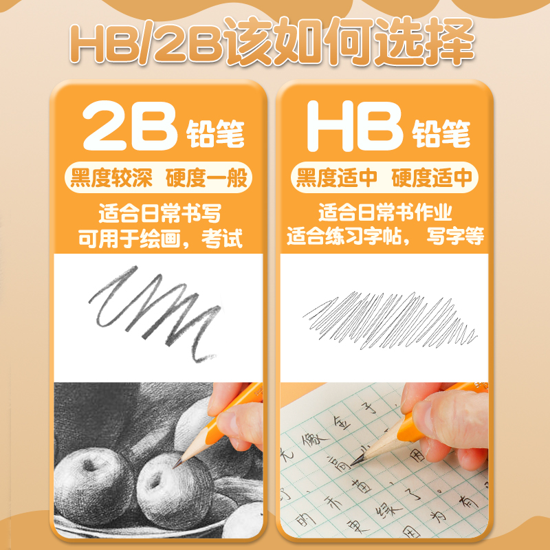 晨光小红杆铅笔2b小学生专用一年级二年级安全无铅毒卷笔刀橡皮六角笔杆易抓握学生考试用答题卡hb木杆涂卡笔