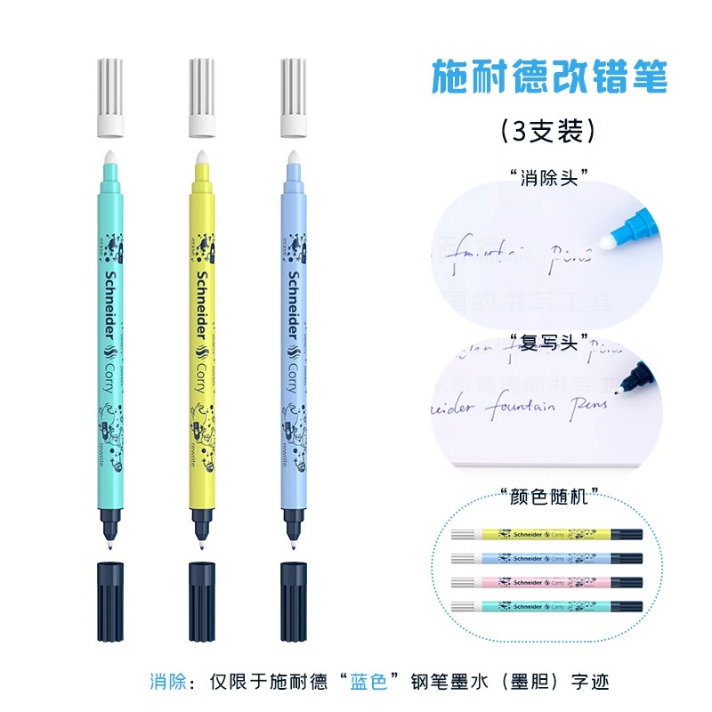 德国进口Schneider施耐德钢笔改错笔无痕消字修正涂改不可反复可擦笔消除笔限施耐德蓝色墨水钢笔擦 擦得干净