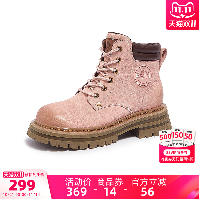 骆驼山越马丁靴女鞋2025秋季新款户外英伦工装登山增高大黄靴子女