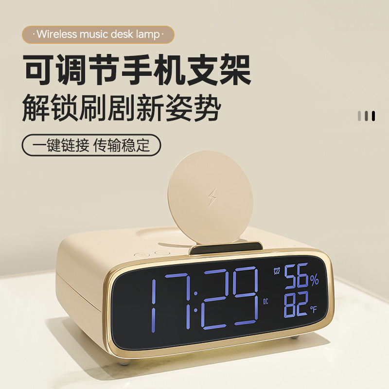 蓝牙音响无线充电多功能夜灯时钟闹铃朋友生日礼物手机台灯可刻字
