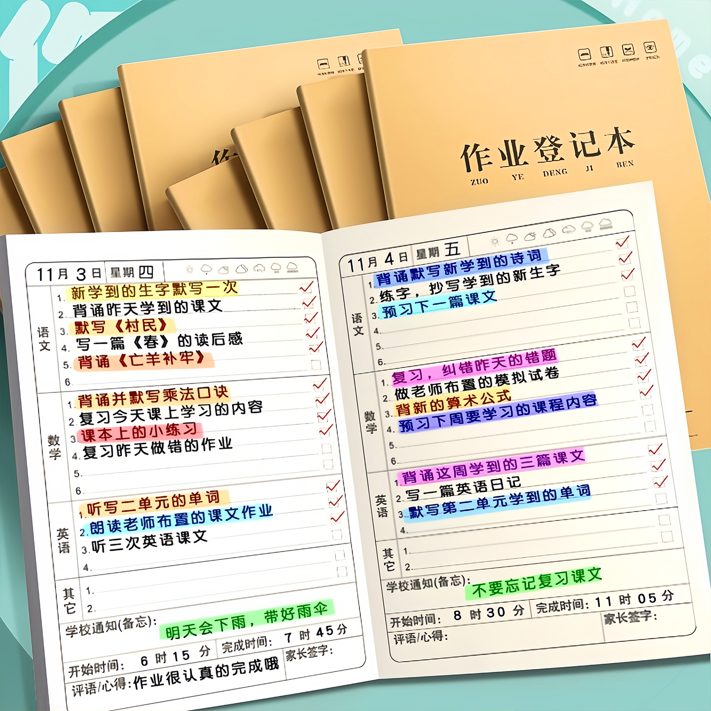 课堂作业登记本学生专用A5高颜值牛皮纸小学生统一标准作业记录本