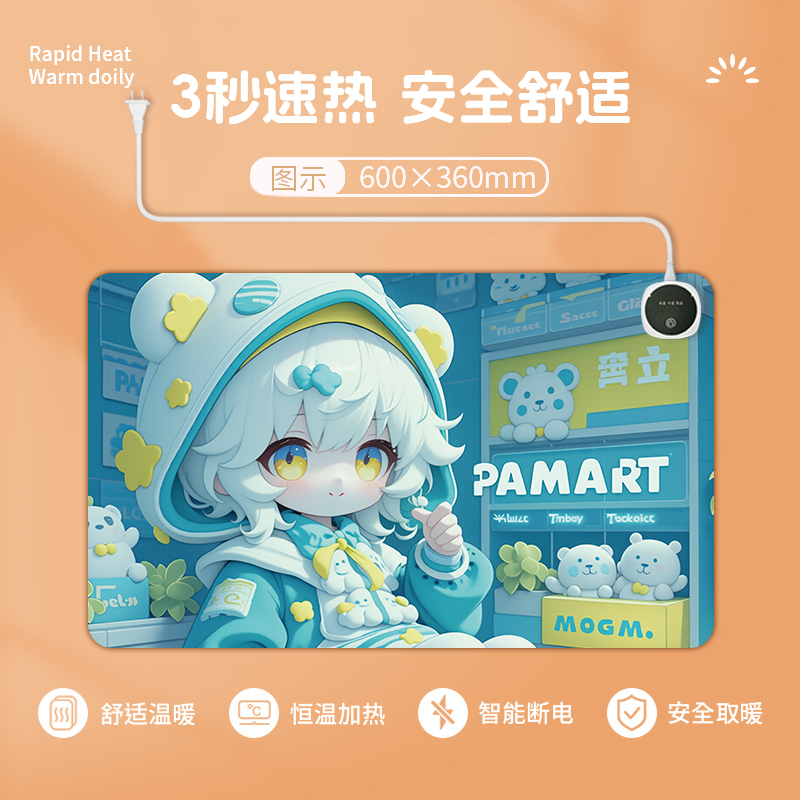 加热鼠标垫发热暖桌垫办公室桌面超大电脑桌加热垫学生写作业