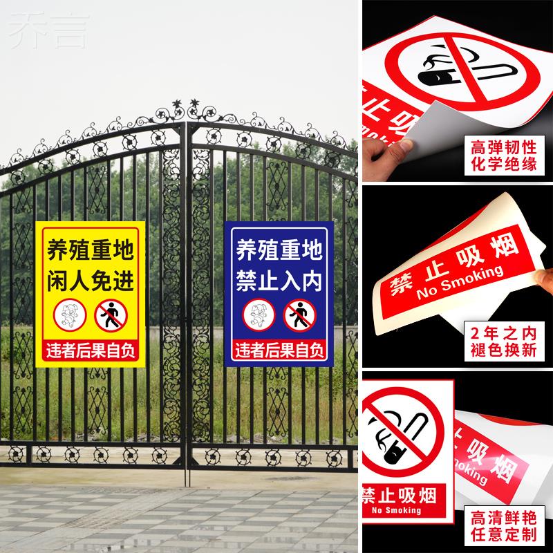 养殖重地闲人免进提示牌养殖场警示牌标识牌养殖场鱼塘养猪重地非工作人员闲人莫入内有恶犬警示牌墙贴纸挂牌