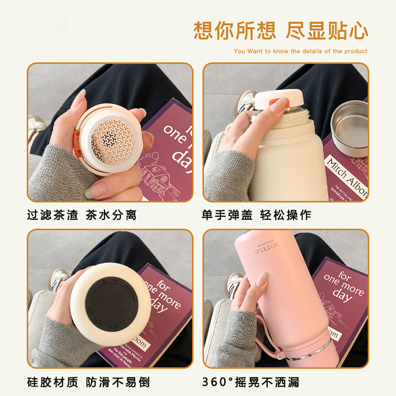 简约大容量316不锈钢保温水杯高颜值水杯男女便携茶水分离泡茶杯