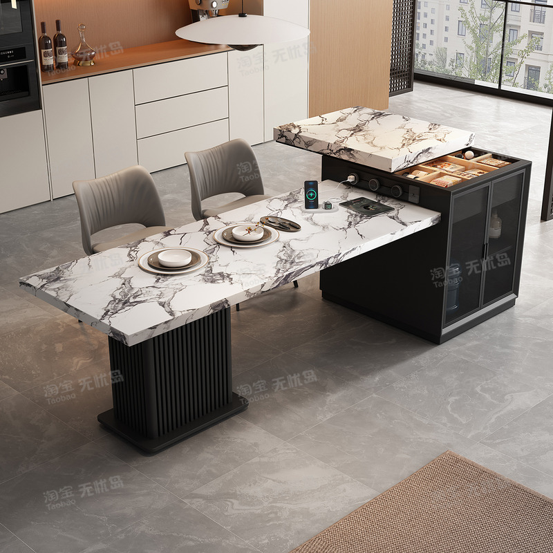 宝格岩板岛台丽餐桌一体式可伸缩大小户型高级导台开放式厨房吧台