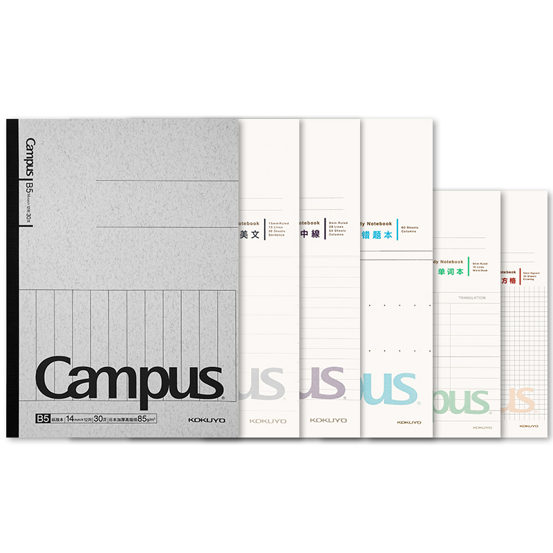 日本KOKUYO国誉笔记本Campus全科目分类学习本分栏本网格方格英语本学生用A5B5作业本作文音乐本随堂记错题本