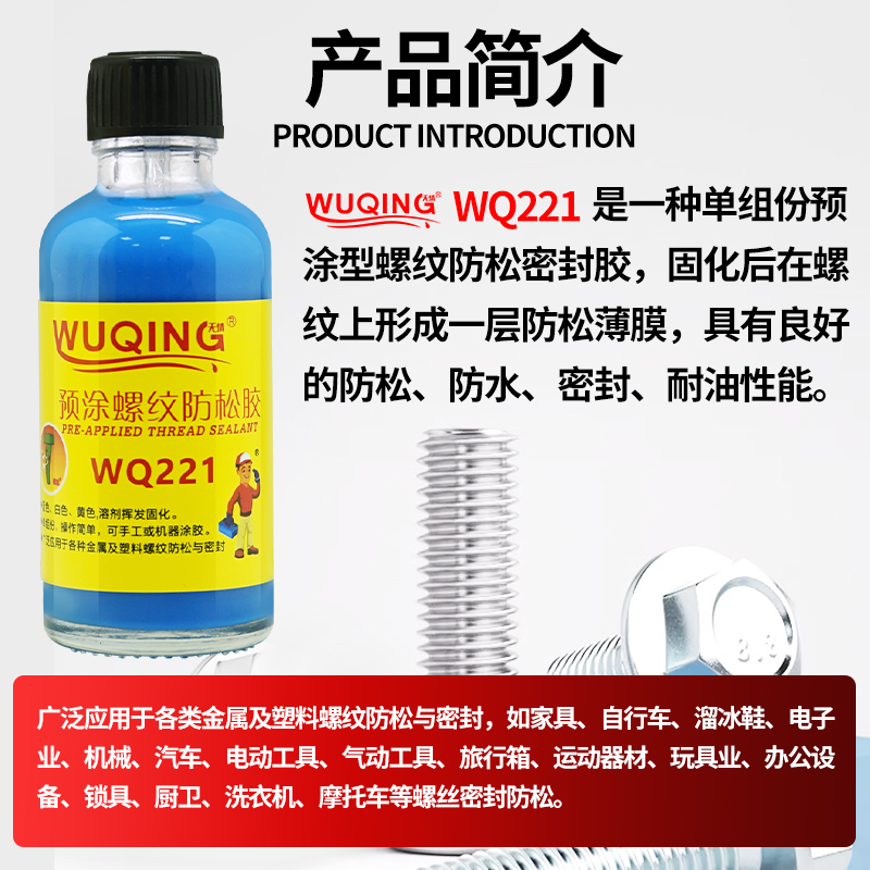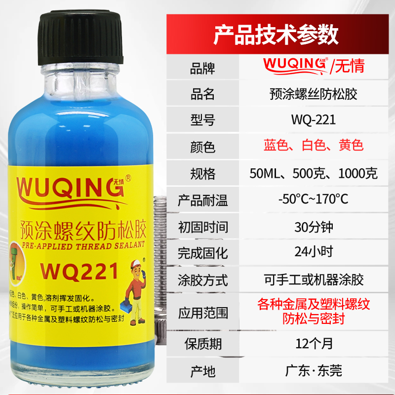 无情牌WQ221螺纹螺丝螺钉螺栓蓝白黄色预涂锁固剂胶水防松动滑丝脱落止退紧固耐落胶快干固定可拆卸预涂胶