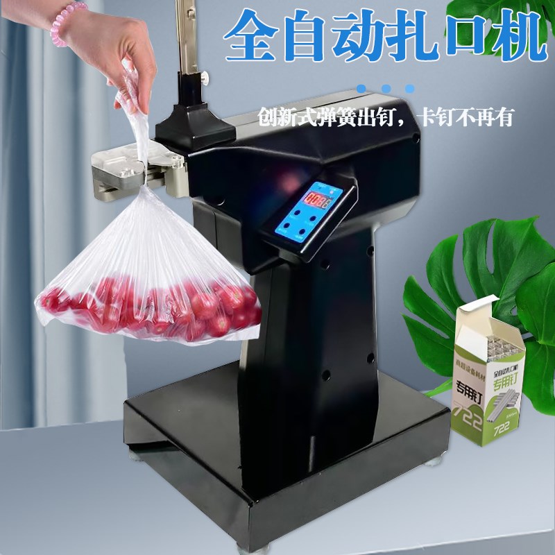 超市全自动扎口机生鲜食品连x卷袋封口机智能感应铝钉机打包扎袋
