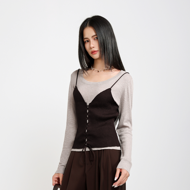 记忆的起点假两件毛衣2024冬季圆领长袖修身设计感上衣68TD52932