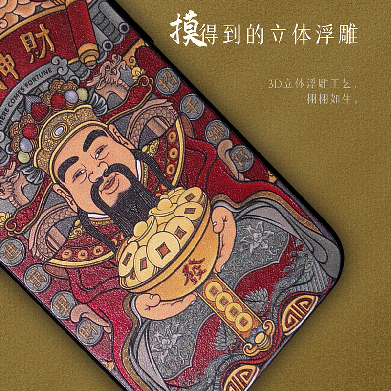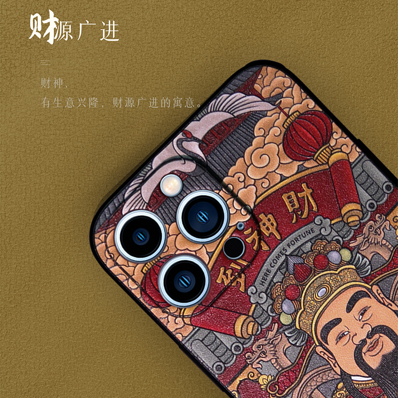 古造 原创财神适用新iphone17发财款iPhone16Promax苹果15promax中国风iphone14pro浮雕13pro保护壳手机壳