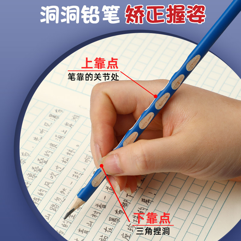 得力洞洞铅笔小学生专用无铅无毒幼儿园儿童三角洞洞笔一年级HB学生笔2B初学者练字控笔训练套装2比学习用品