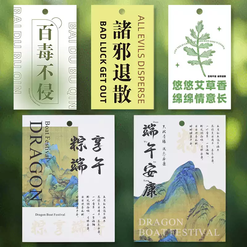 诸邪退散端午节贺卡粽子礼盒纳福百毒不侵端午伴手礼祝福卡片吊卡