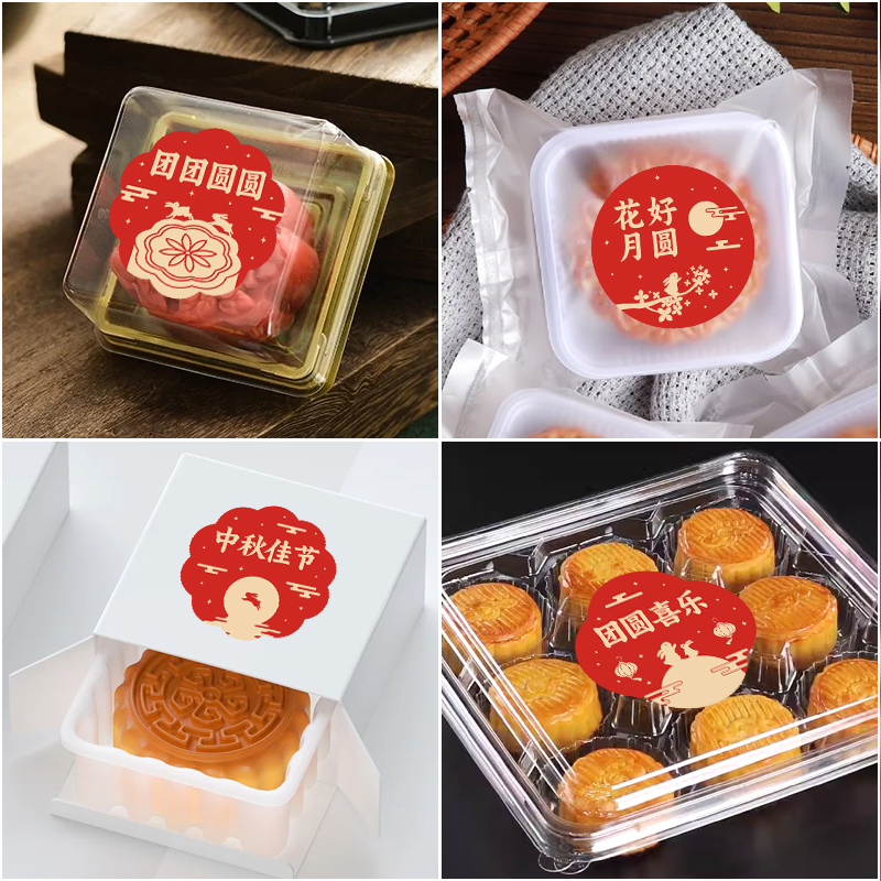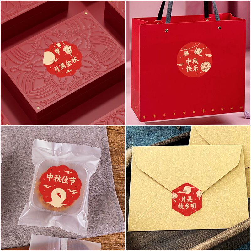 中秋节喜庆大红贴纸月饼礼盒包装盒封口贴不罕见茶叶礼物装饰贴画