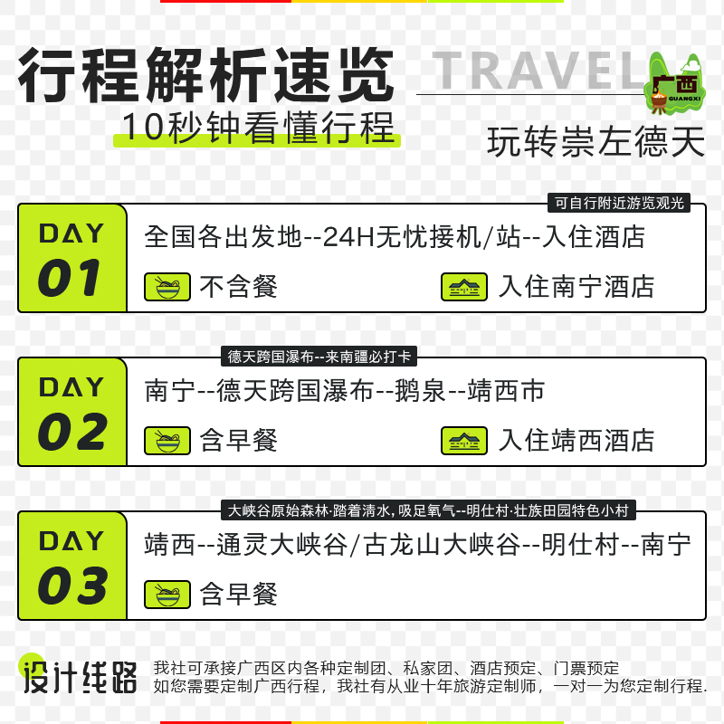 广西南宁崇左旅游3日2晚拼小团德天瀑布明仕2-8人纯玩三日跟团游