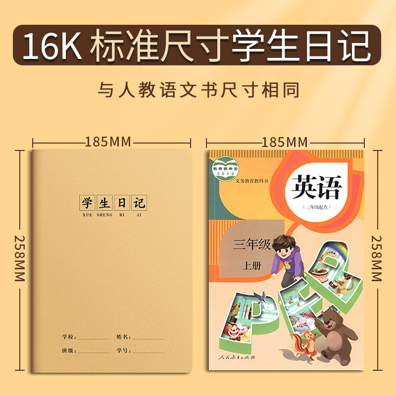 开学季学生日记本16k牛皮纸作业本小学生专用加厚方格日记本一年级二年级四五三年级用作业本语文作业本批发