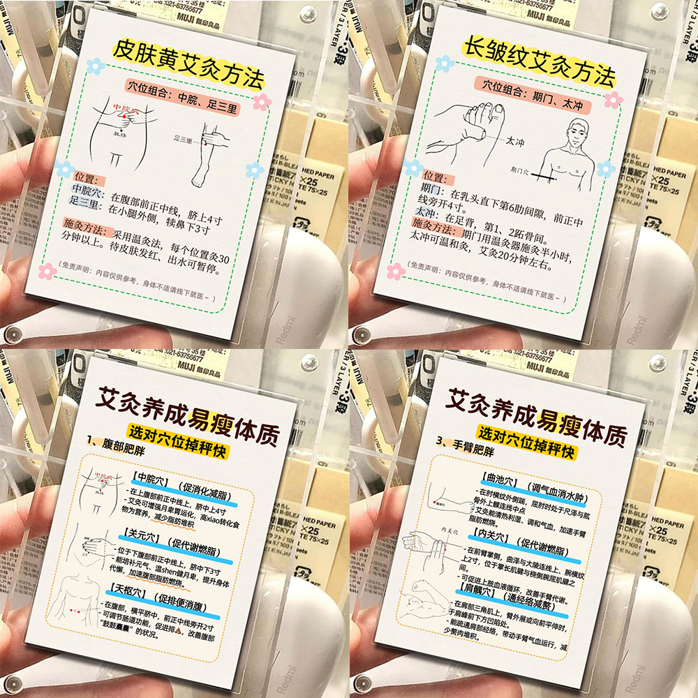 艾灸养生经脉循行易瘦体质养成经络疏通调理穴位按摩科普小卡