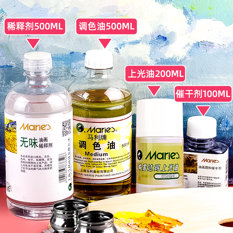 马利牌油画材料媒介辅材调色油清洗剂无味松节油上光油瓶装稀释剂