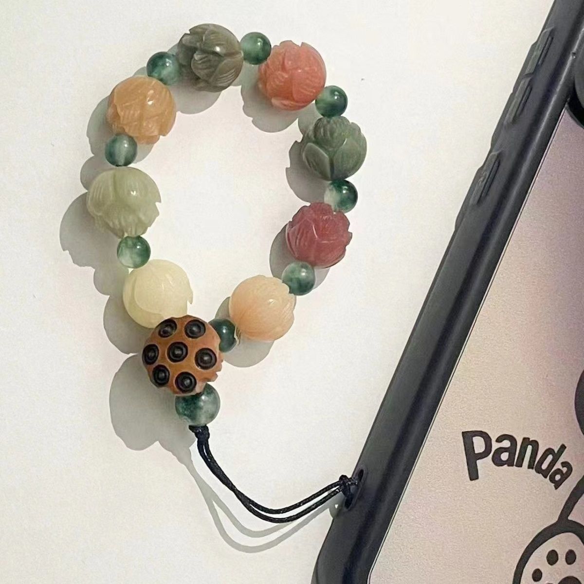 菩提根莲花多宝手机链好运连连女款精致手机壳挂绳手腕防丢挂饰
