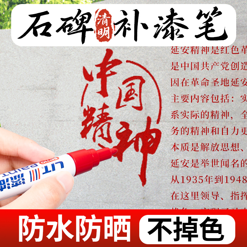 红色油漆笔碑文补漆记号笔防水防油不掉色大头签到名字绿银蓝黑描白金色的闪粉上色补色金属几计好大号比粗头