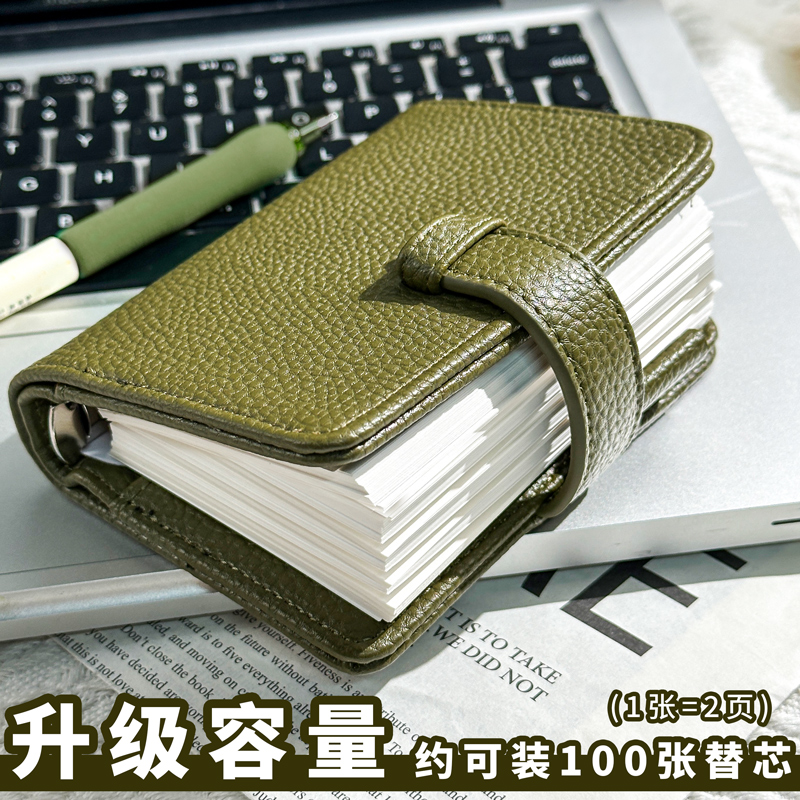 高颜值M5荔枝皮面活页手账本大容量可拆卸5孔可收纳卡片纸币多功能活页本学生专用随身空白手帐本日程记事本