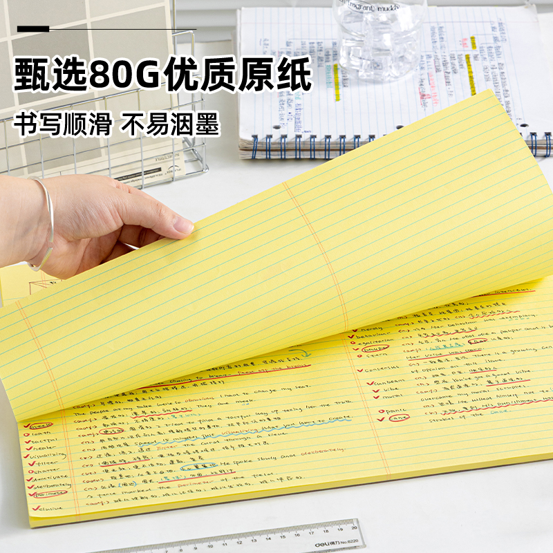 晨光笔记本子 B5米黄横线内页笔记本作业登记本缝线本子A5小学生笔记刷题便携简约可爱记事本