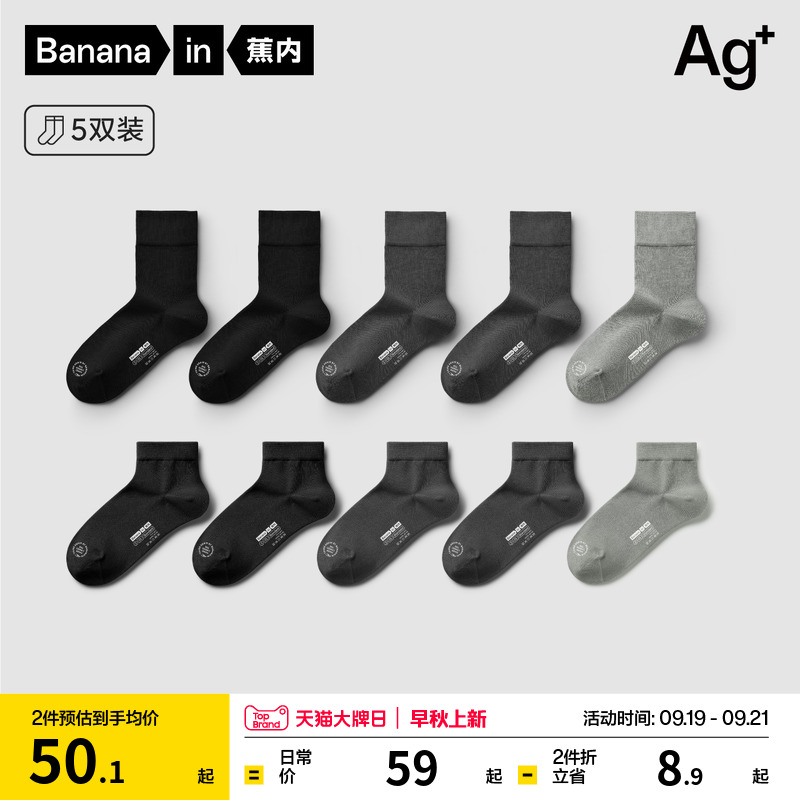 7A抗菌|蕉内银皮301S袜子男中筒袜吸汗防臭运动短袜秋季长袜棉袜
