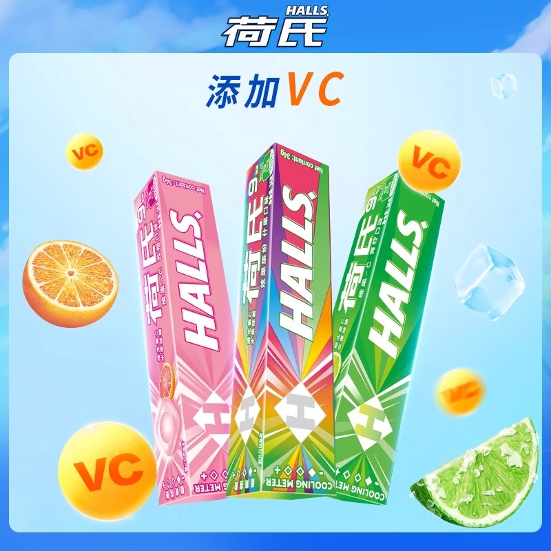 荷氏薄荷糖午夜风暴强劲清凉34g*12条特强清新口气润喉糖果零食品