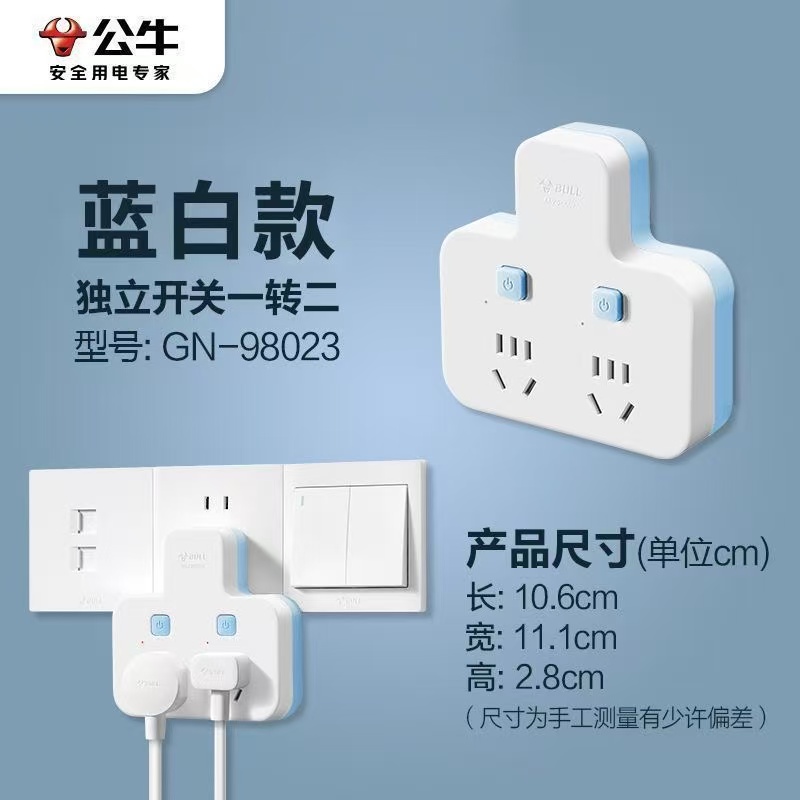 公牛插座一转多分控品字形拓展不带线转换器多功能插排分控开关