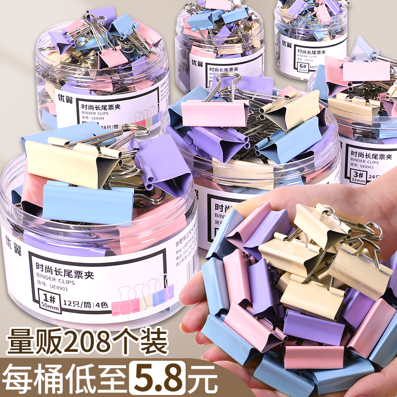 优翼彩色长尾夹燕尾夹大号票据铁夹子混合装文件试卷固定书本文具夹小号蝴蝶鱼尾凤尾雁尾燕为反尾夹办公用品