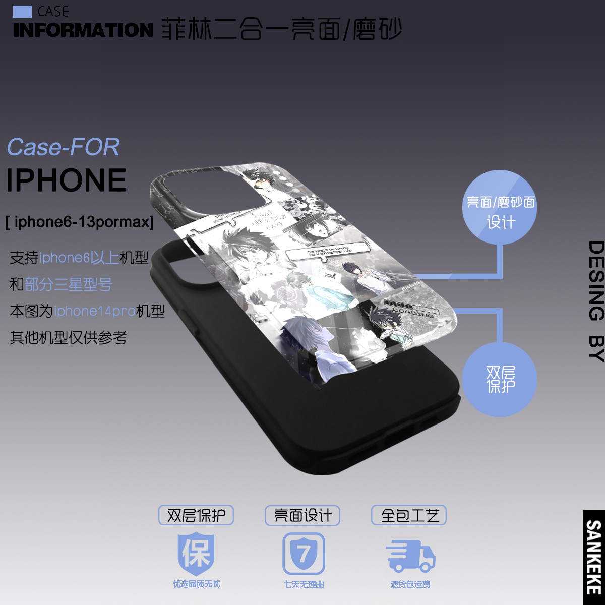 三壳壳原创小众动漫死亡笔记L拼图全包IMD亮面精孔手机保护壳适用于iphone16/15/14/13/12/pro/plus/max安卓