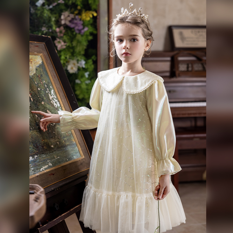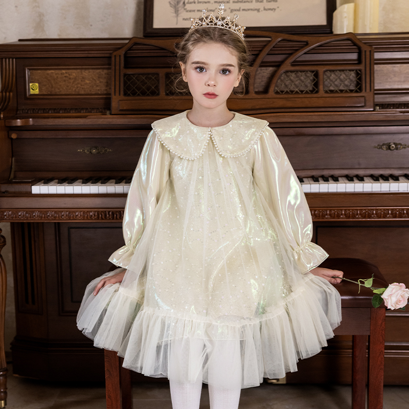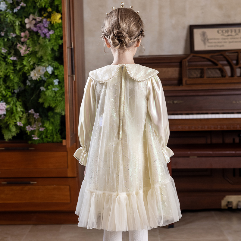 女童春秋连衣裙儿童富家千金感公主裙小女孩花童婚礼生日绝美礼服