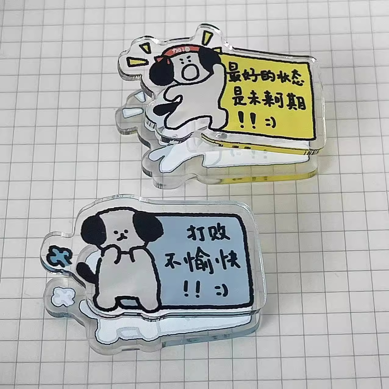 超可爱卡通励志线条小狗亚克力PP夹创意动物便签夹手账夹文件夹子