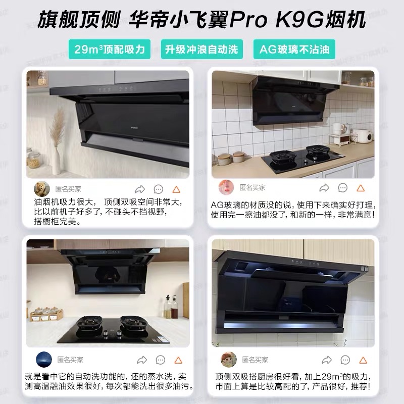 华帝油烟机K9/K9G顶侧双吸烟机家用厨房抽烟机自动洗变频官方旗舰