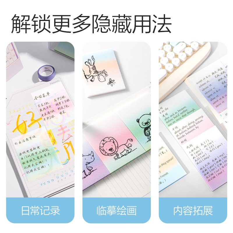 得力渐变珠光透明便利贴强粘性快干ins便利贴学生手帐小本子备忘记事本便条少女心便签纸可撕简约高颜值