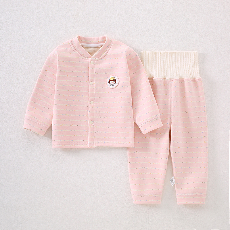 婴儿衣服羊毛蚕丝条纹保暖内衣加绒高腰秋衣秋裤宝宝分体套装秋冬