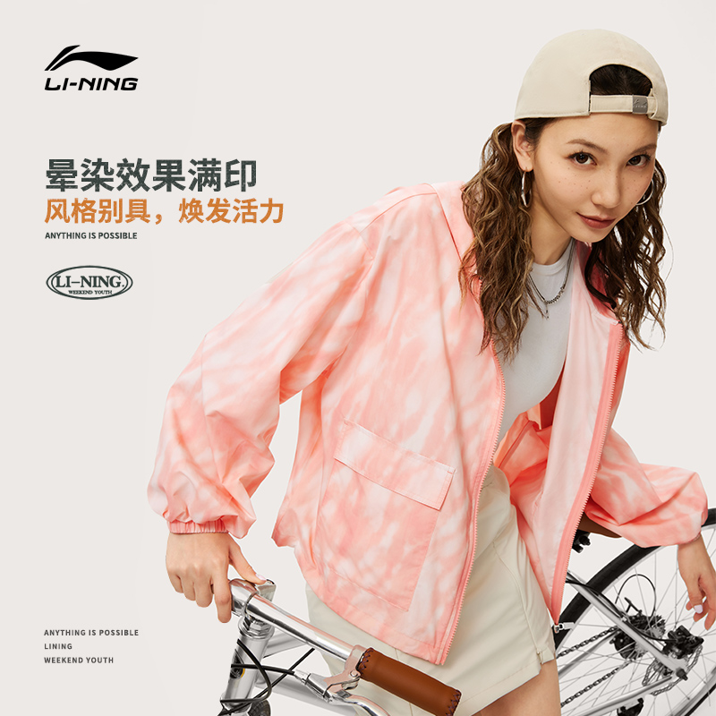李宁防晒衣女士夏季晕染上衣户外抗紫外线运动风衣连帽宽松薄外套