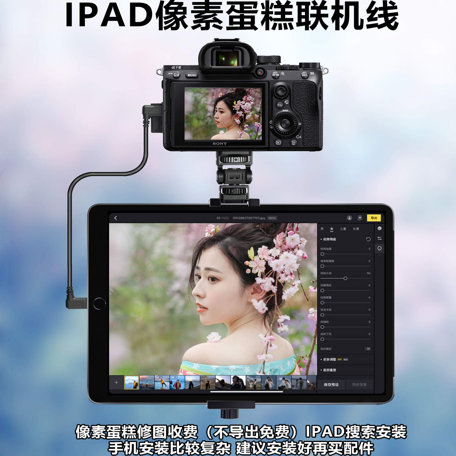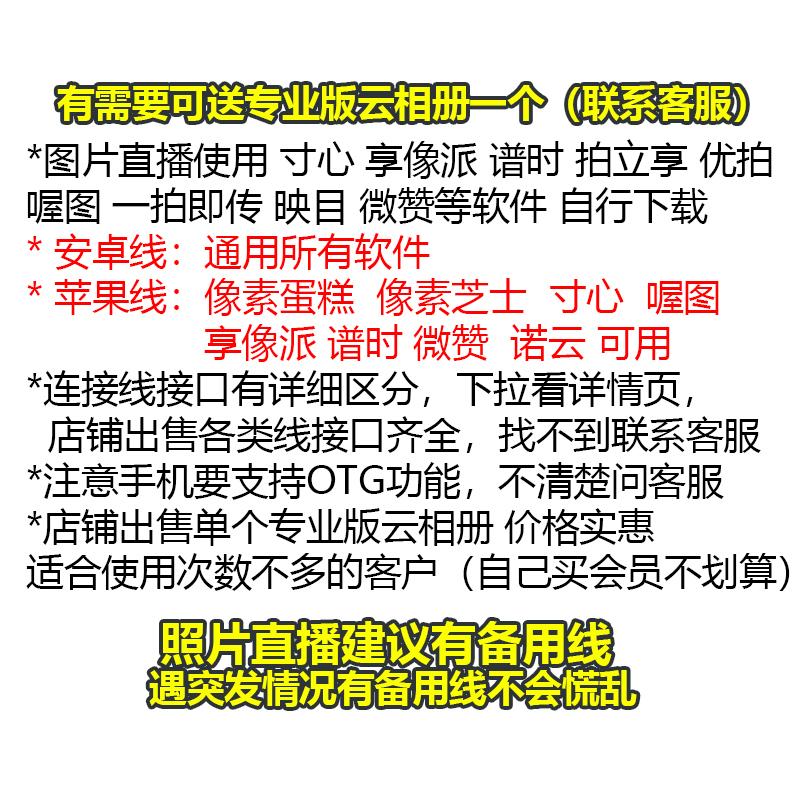 适用苹果闪电口连Typec相机佳能r6R5尼康Z67索尼A7M4a7cM3像素蛋糕谱时享像派喔图寸心照片直播OTG传输数据线