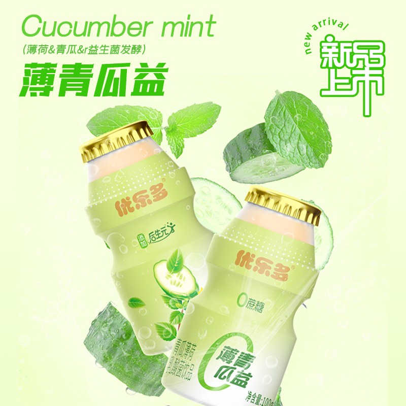 优乐多薄情瓜益乳酸菌黄瓜味100ml*20瓶益生菌发酵薄荷蔗糖