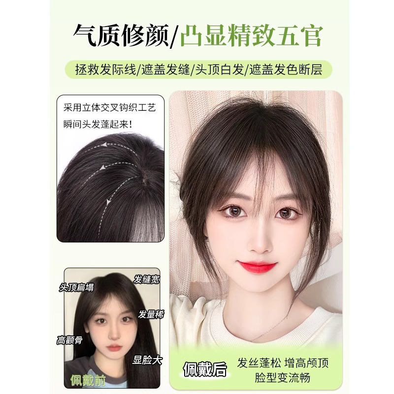 天空树款假发旗舰店刘海女片头顶补发增发量蓬松真发八字前额法式