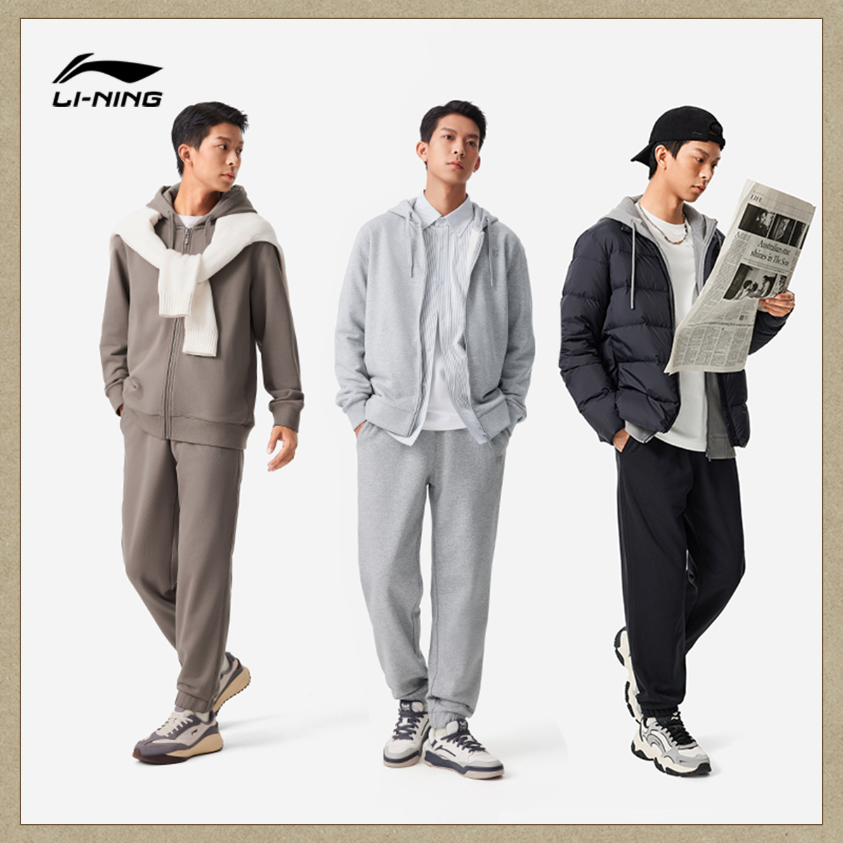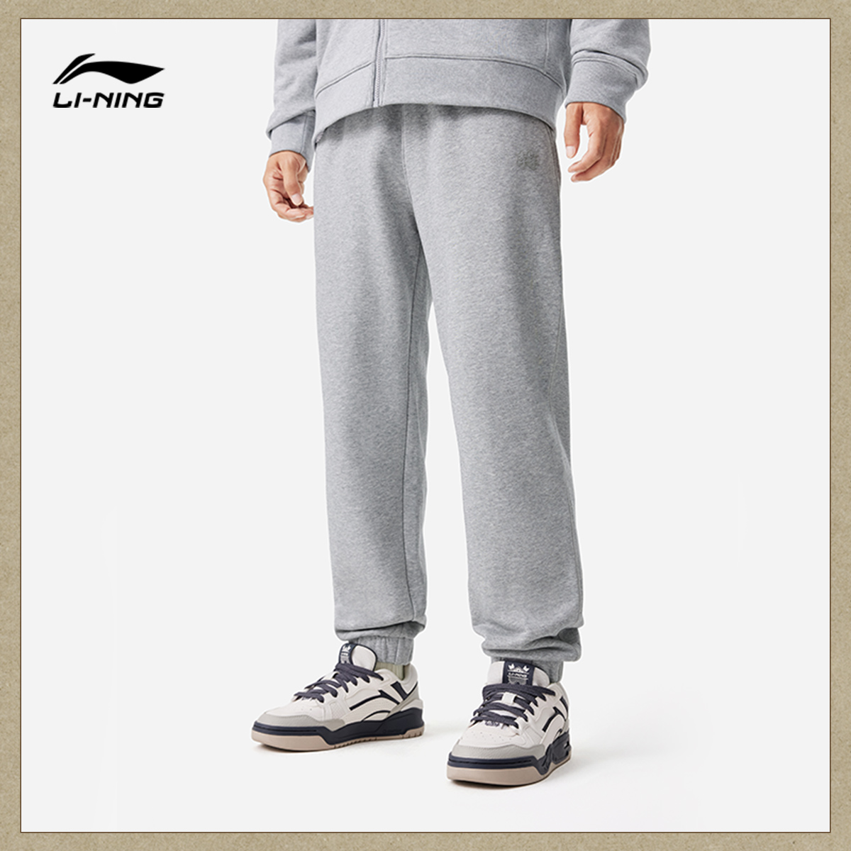 李宁卫裤灰色裤子秋季透气男士休闲裤宽松刺绣针织长裤运动裤