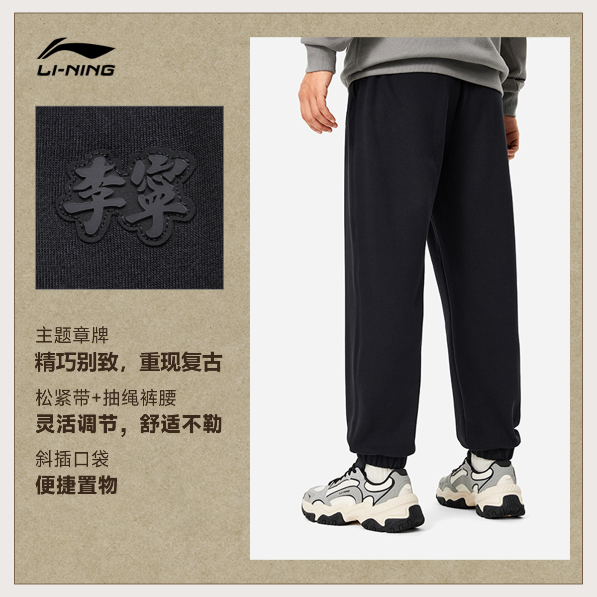 李宁中国色系列卫裤男士运动跑步健身长裤男装透气束脚针织运动裤