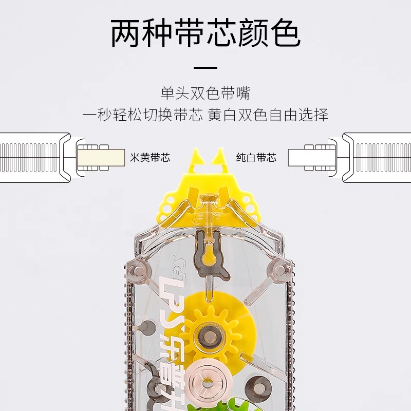 乐普升双色修正带黑科技小学生专用大容量涂改带单头米黄白色多功能改错字笔式修改带顺滑学生用修正带改正带
