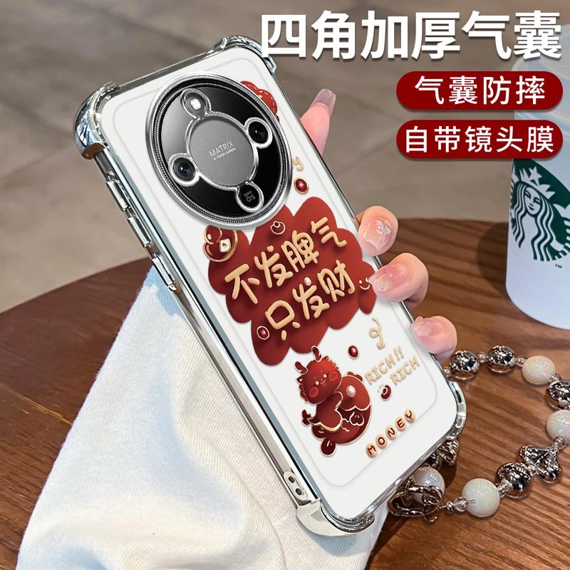 适用华为荣耀X70手机壳发财金蛇电镀四角防摔Honor简约硅胶气囊全包荣耀X70i高颜值手链女款保护套