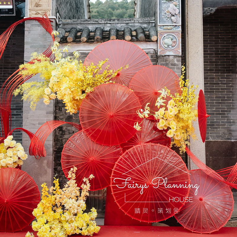 红色油纸伞新中式古典婚礼布置户外绸布国风造景装饰伞婚庆道具