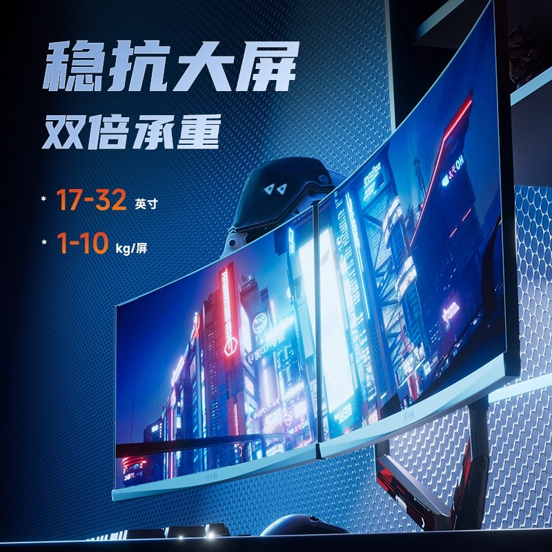 显示器双屏支架一拖二电脑笔记本副屏幕二合一升降底座气压桌面