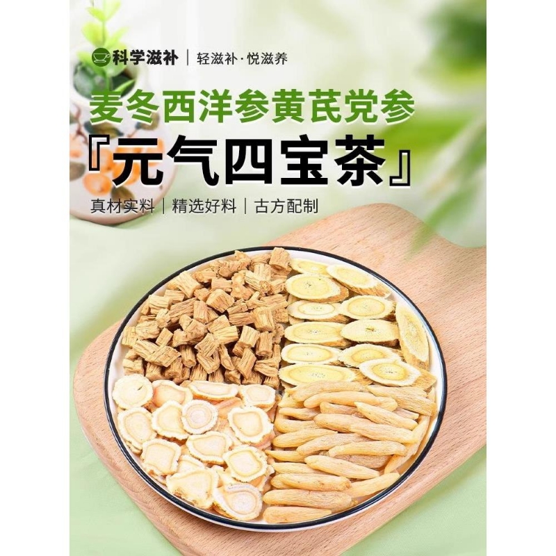 元气四宝茶黄芪党参麦冬西洋参泡水喝的男女养血养生茶包出汗多汗